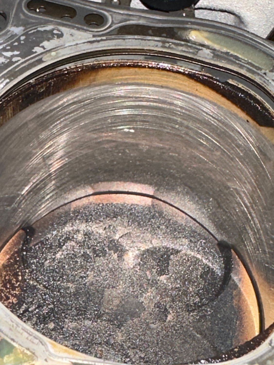Hey Danno, I apologize about reawakening this tread after a while, but I had an idea I was curious about. Way back when I checked the cylinder walls they honestly didn’t look to terrible, I’ll attach an image for you to take a look at if you’d like. I also ended up doing a compression test and it was horrible, sub 100s across the board. I soon realized that a few exhaust valves had a pretty bad leak, I didn’t think much of it at the time, I’m going to have a buddy of mine pull a bit more of the bottom end off to check the bearings/oil for shavings. Do you think possibly it could’ve just been valve tap? Because the leak seemed pretty bad, filled the valve pit with water and two of the four cylinders had leaked it all out within an hour. Namely out of their exhaust ports. Once again thank y’all for the help, I know it’s been quite some time since I last responded but I’m trying to get this thing done.
