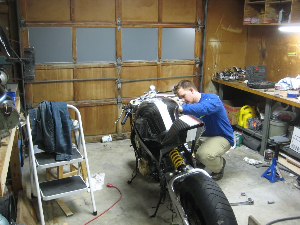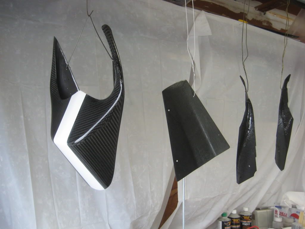 then i put some hooks in the rafters, and got everything set up. http://i23.photobucket.com/albums/b3...7/IMG_2729.jpg also i wanted to paint the bottom of the tank in black, but it worked out better to just do it all one color...but i did need to cover up the red. Attachment 49463 there is something AWESOME about flat black and white. i kinda wish i could keep it that way. but... the Carbon fiber resin is photoreactive, so i need a UV protectant clear-coat to keep it from yellowing, so gloss it is! Attachment 49464 also.. i kinda like the white underside.. Attachment 49465 tail, undertail and side-covers too: http://i23.photobucket.com/albums/b3...7/IMG_2734.jpg Huge shout-out to bengone1 for letting me borrow the compressor. i really need to get one. okay, huge development yesterday. i got the header back! Attachment 49466 The welds are strong and crack-free Attachment 49467 i also put the body-work on the frame just for fun. i ran out of daylight, but you still get the idea. Attachment 49468 next step, finish the engine. more soon! |