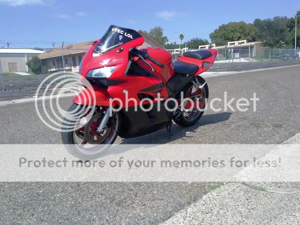 haha I know man, I was mad at myself for about 5 minutes then I cooled off, Lol. On the good side, hows the red tail and tank look, it was an el cheapo paint job just for the remainder of the year. Need to paint the swing arm black again.