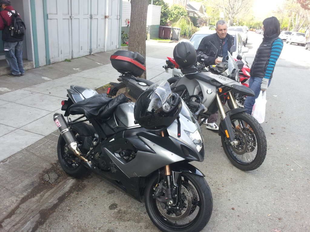 Here are some pics. Attachment 39664 That's the PO. He's crazy fast and the king of the BP wheelie here in Oakland, but he's getting on in years and has broken his back in the last 10. He no longer has fun swinging on a damned near 200hp torture rack, that's why he gave me a deal on the thing. Attachment 39665 He now embarrasses young guns on superbikes on that BMW F800 in the background here. That bike is pretty much the only adventure bike on the market today. The others (GS1200, VStrom, Multistrada, KTM Adventurer 990) are sweet bikes but too damned heavy to be dirt capable. Attachment 39666 And here's a stupid juvenile thing I did when my boss pressured me into riding to work on a day I took off to do nothing and made me lane-split 30 miles on 80/880 to Hayward on a new bike. He wanted me to come before getting proof of insurance! ****. That. So anyways, it's a sweet whip and I hope I can be as smooth as the bike is going over choppy East Bay mountain roads! |