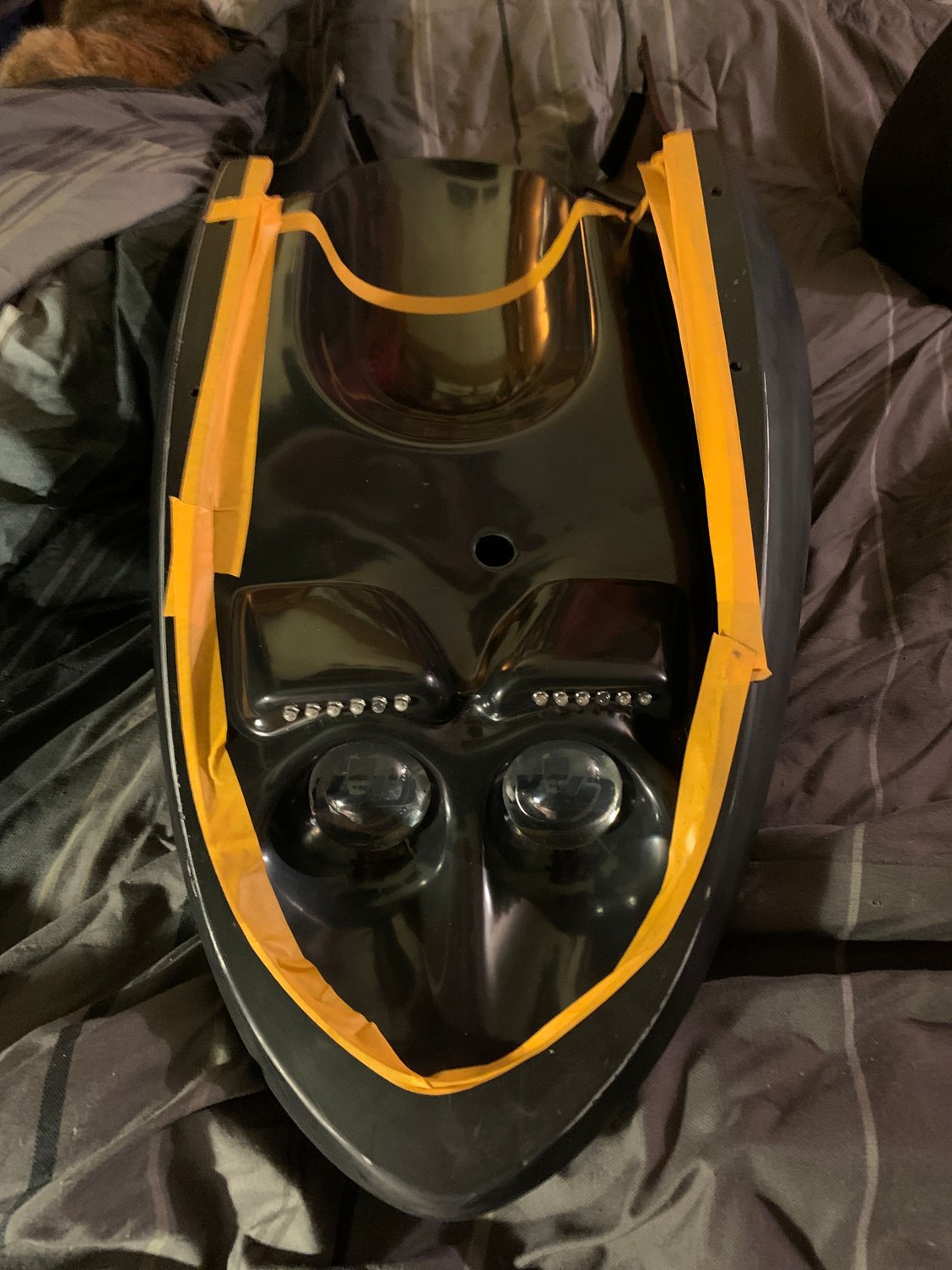 my fairings are off getting custom paint job, but I put it up under the rear tail section and doesn’t look like any mods will be needed? Relocate the key lock, mount your plate bracket and light. Fairly simple. Good lu Orange tape is just to dry fit it before it gets painted