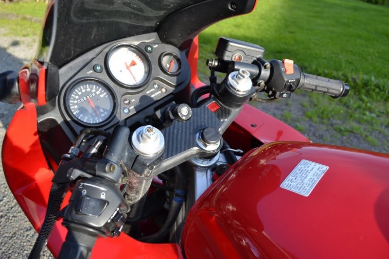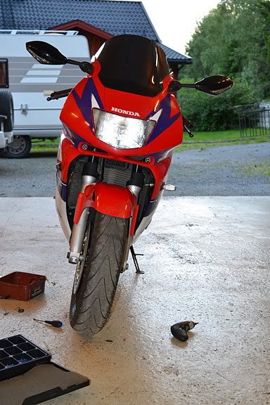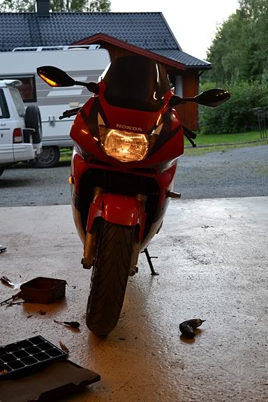 It's a 1998 F3 that I bought last spring, as the urge of having a bike became to strong.. This was one of the few that was for sale within 1 hours drive from me, that was in my pricerange. This meant that it wasn't mint of course, so that brought the price down a bit. (These bikes is actually priced higher than an 900RR from the same year it seems) This is a picture from the Ad, before I got it: Attachment 45822 The first thing I did was to change the mirrors, since they were cracked Searched ebay for a set that I liked, and settled on those. Here I have also started changing the side signals: Attachment 45823 with turn signals on: Attachment 45824 The ebay ad stated that the LED-signals were for the F3, but it wasn't exactly so. At first I tried to just mount them, but they disappeared into the mounting hole. Attachment 45825 Made up two adapterplates: Attachment 45826 Painted them black: Attachment 45827 finished: Attachment 45828 The obligatory redbull mod: Attachment 45829 Attachment 45830 Bought this lasercut Carbon-plate (on Ebay ofc :P) Attachment 45831 Before: Attachment 45832 After: Attachment 45833 Attachment 45834 I've also re-upholstered my seat. Before: Attachment 45835 Attachment 45836 Attachment 45837 New vs. Old: Attachment 45838 During upholstery: Attachment 45839 Changed Bar-ends: Attachment 45840 new vs old Sprockets: Attachment 45841 Attachment 45842 Attachment 45843 new vs old Spark plugs: Attachment 45844 |