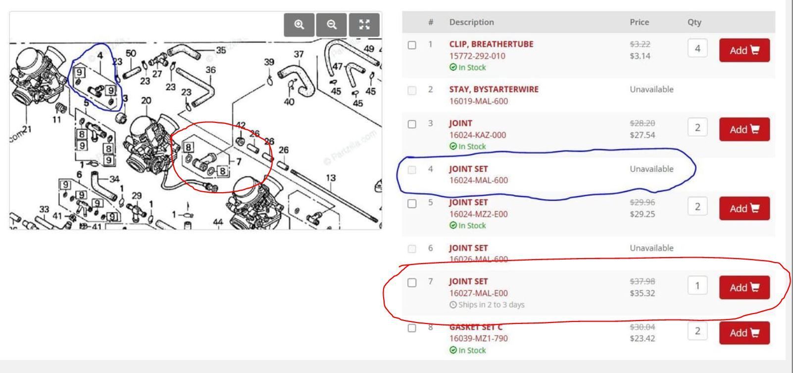 Sorry, but it's not the same part. As you can see, the link he sent was for 16024-MZ2-E00 which is for joint set number seven circled in red in the part diagram. And that part is not even the same part listed for this CBR.