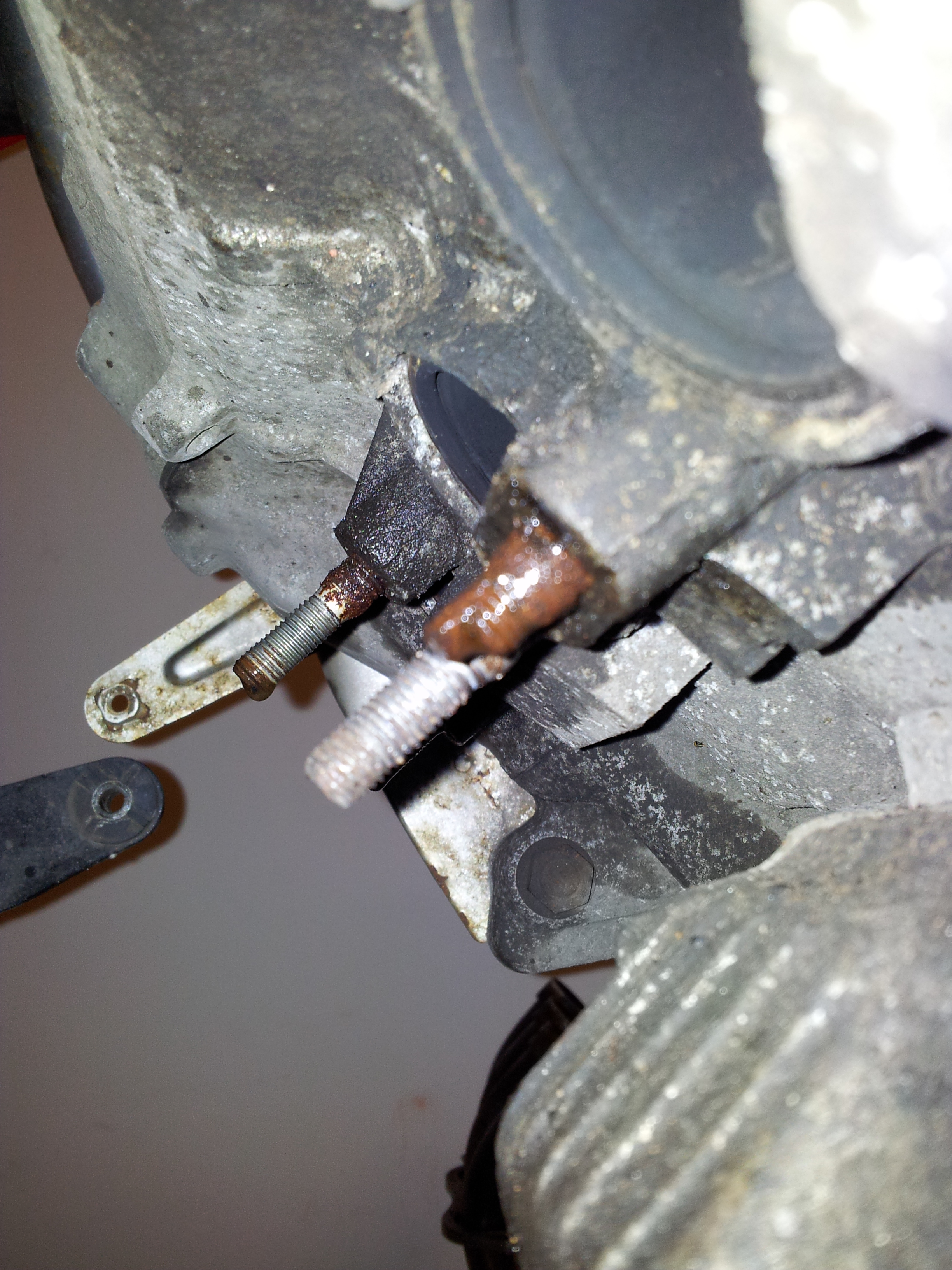 I've ordered some 7mm nuts to remove the remaining studs, couldn't find them anywhere in B&Q, Halfords and random motor spares shops. Managed to locate some genuine studs and nuts to replace the current ones. When the nuts arrive im going to attempt to weld one to the broken stud and remove it, will a mig welder do the trick, will the current damage the electrics on the bike?