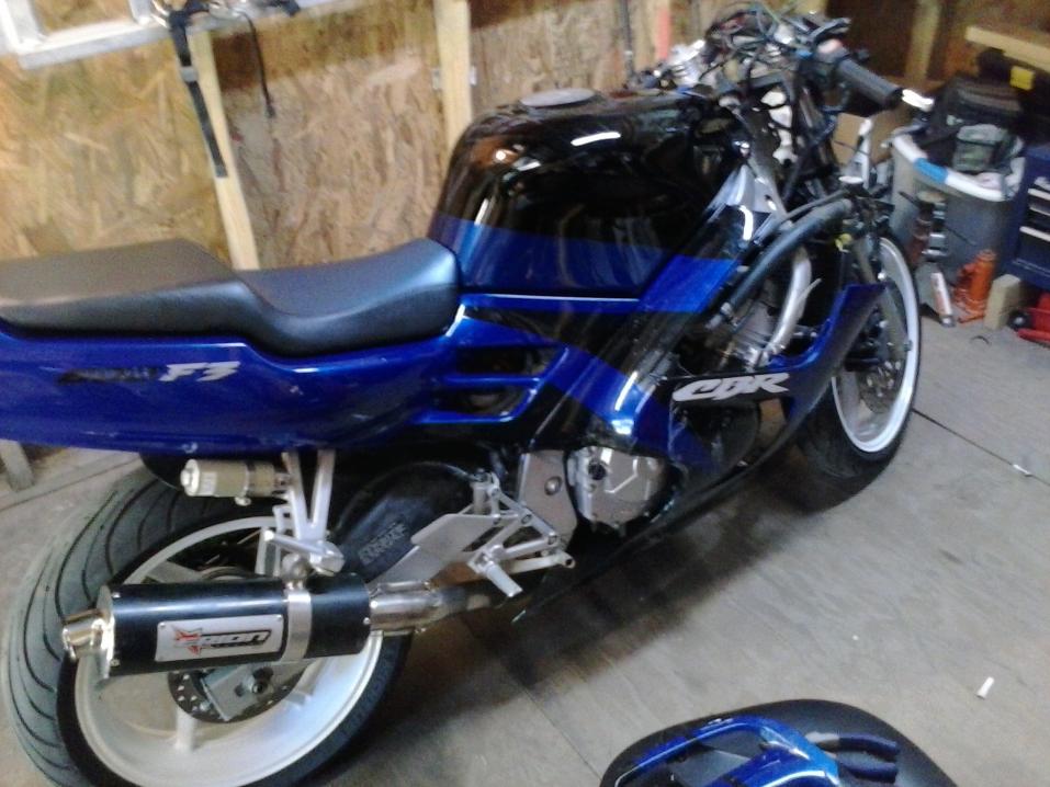 Hey all! I just traded my yamaha blaster for this 96 cbr f3!! Its needs sum cosmetic work along with sum new guages but...it does run very,very good!! It has 25grand on it and from what i can tell has been takn care of. I just figured id share what ive got going on and look forward to working with yall and getting this this back in shape by the time it gets warm again!!