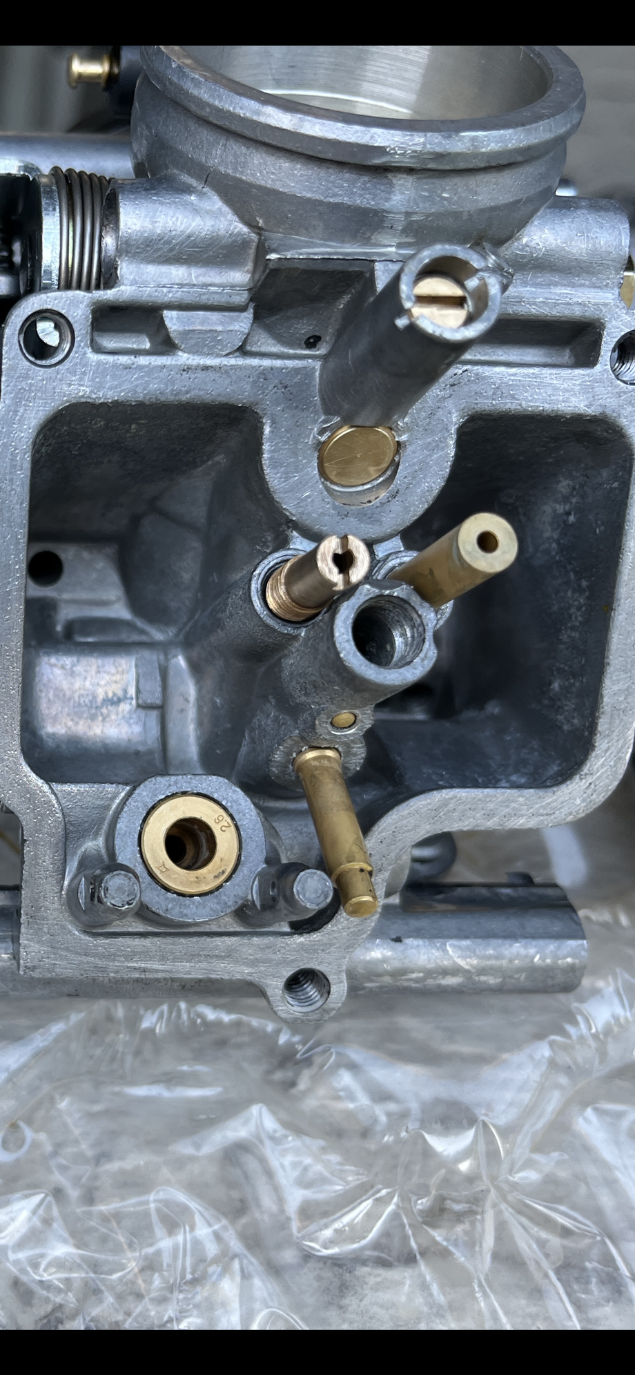 Previous owner used RTV gasket maker as the o-rings for the fuel line-t and for the float bowl gasket. Was very messy and required removal of all the fine particles of the liquid gasket dried up inside the float bowl, and fuel rail chambers.