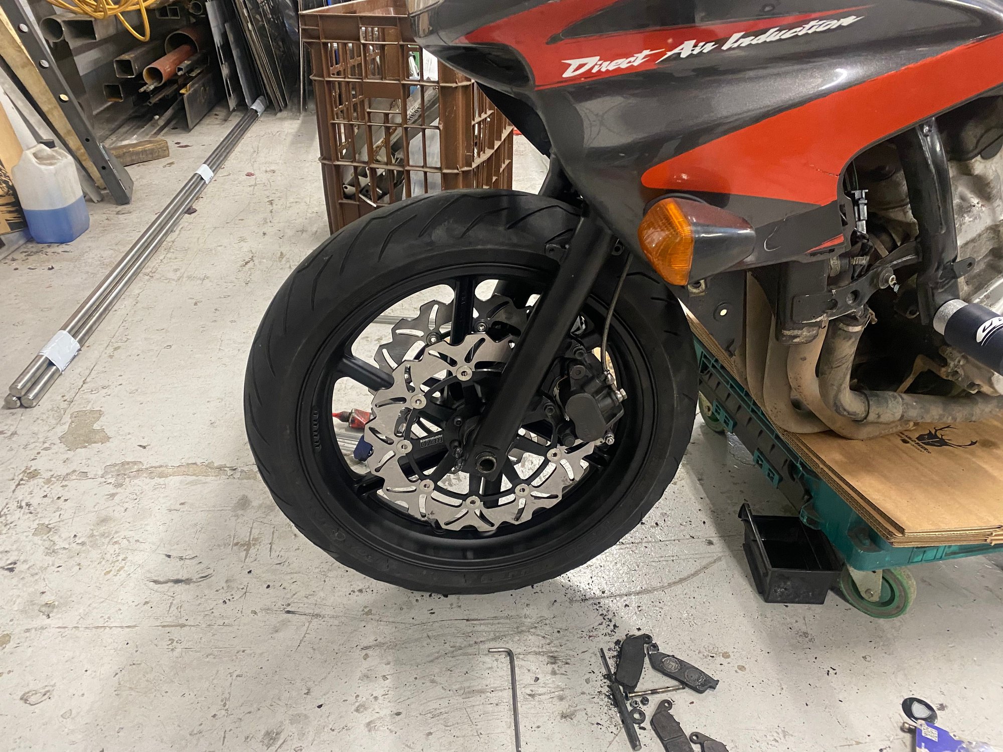 Managed to get some more done. Fork seals completed shot and seized in there solid. New seals after local bike shop helped get them out. Then callipers had been bodged and disks were shot also.