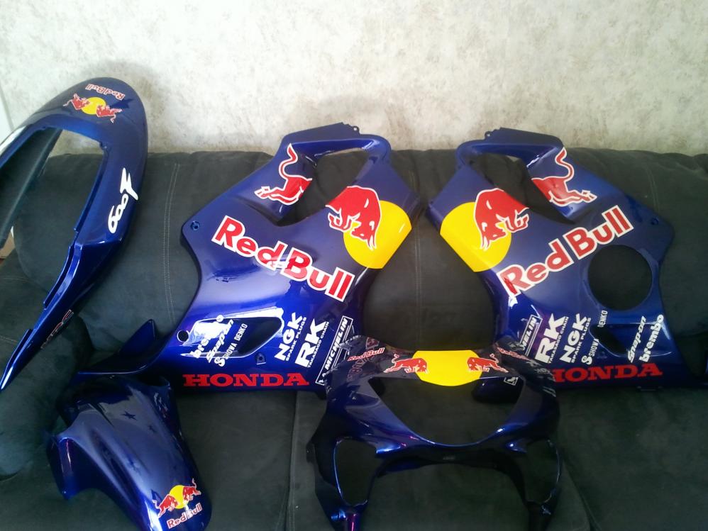 I have a 2000 f4 that i bought all new red bull plastic for cant wait to get it all on the bike n see what it looks like. I was just wondering if neone else out there has put a simular kit on there bike n post some pics so i can see how it turned out. Ive looked on pic threads but have found no other bike with this kit i like bing diffrent so this is a good sign for me but there has to be someone out there with taste like mine. i tried to post my most recent pic of my rebuild but file size is to big but ill get it up on here soon. this pic is the begining of my build