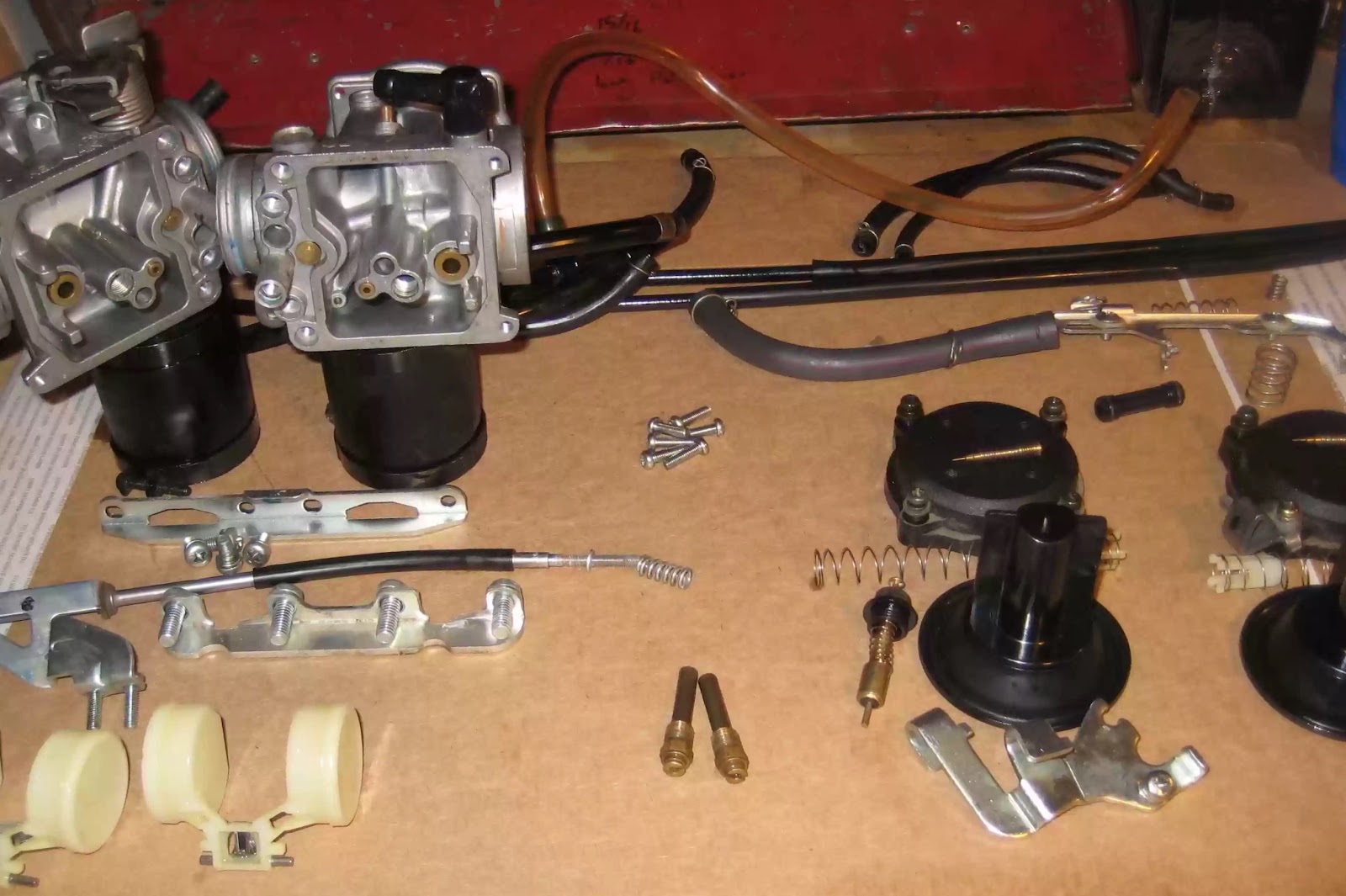 Replace all rubbers: float valves, pilot screw O-rings, fuel-rail O-rings, float-bowl seals, even slide diaphragms if needed. Set float levels, sync carbs, etc.