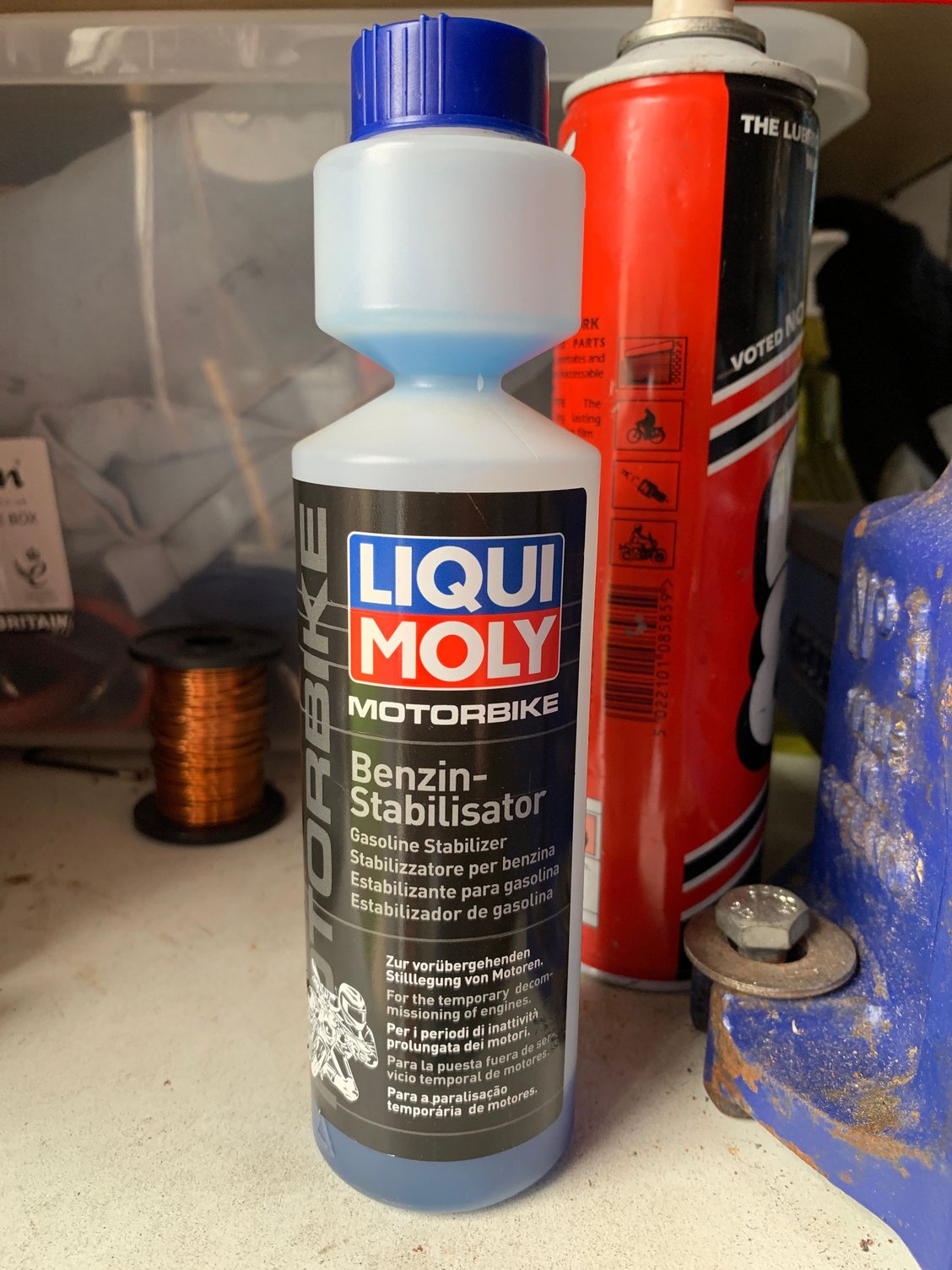 yeah I heard that before actually! I normally brim the tank with shell V power and then add some stabiliser. This Liquimoly one worked a charm this winter on my track bike, fired up instantly. My lawnmower with E10 on the other hand needed a full carb clean to even get a splutter!! 😔