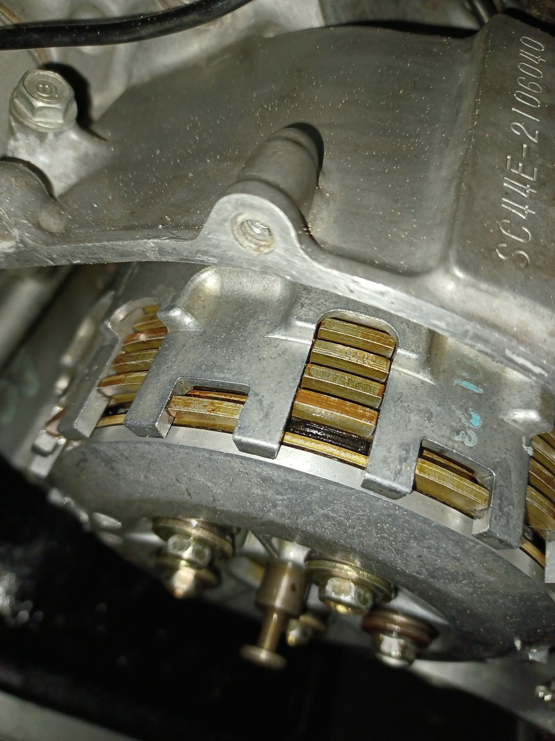 Hey everyone on the forum just needs some help real quick with my clutch I got a 2001 CBR 929 RR and here lately my crate might wake up I hear this almost like a knock but it's not a knock I did find out it's not my lower rod bearing and when I crank it up if I hold the clutch in I won't hear it so I believe it's my clutch plates all right so I took my clutch cover off and did an inspection I didn't take anything off of it I just took the cover off and looked inside to see if I see any thing broken metal chips anything like that shavings etc here's some pictures I did tighten down the the springs though the five bolt springs on the pressure plate and I noticed that one of them was different compared to the rest here some pictures let me know if there's anything out of the ordinary and what I should probably do be I was driving the other day and I went to go into second year and it was like missed it completely yeah allergy was like a high revving sound and the bike wasn't going anywhere