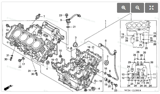 Hi and welcome to the forum. That type of damage requires replacement of the entire crankcase which consists of an upper and lower half. You can not replace only the lower half. It is a matched set with the upper half. So basically you're looking for an entire engine to replace this one.