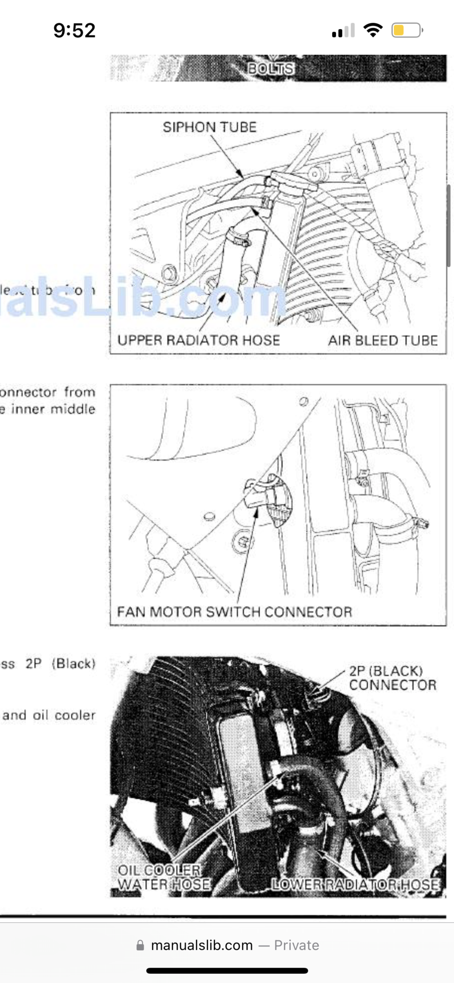 I figured out the wires that come from the fan the previous owner had connected together, I pulled them apart and connected them according to a manual I found online (pics below). I let the bike idle, after about 7 minutes temp got up to 240 and the fan still didn’t come on so I shut it off. I’m not the most mechanically inclined but if I could figure this out without a shop I’d like to. Any other ideas on what to check? Has fresh oil change and coolant flush.