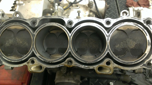 as you can see the biek was running extremly rich. i dont have a picture of the spark plug but the irridium was actually gone. As for the head it deffinatly needed to be bored with as much the pistons were groving the walls. gotta love the new 4 training wheels she has