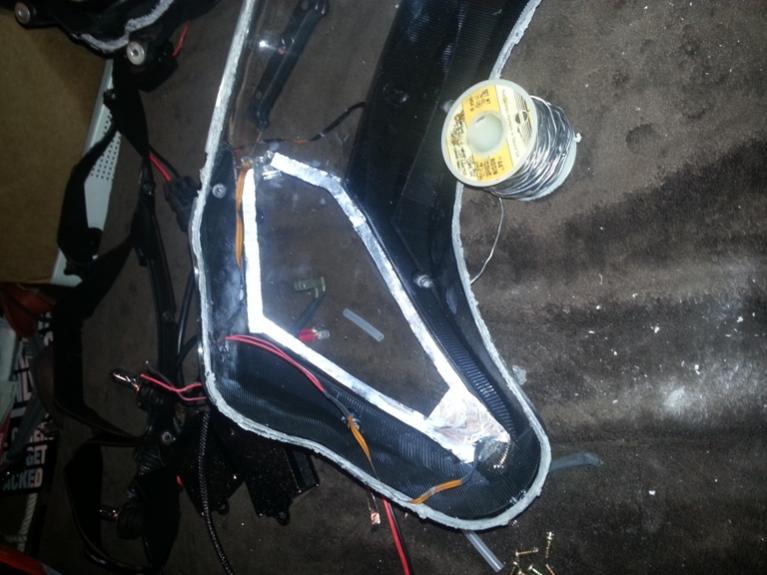 in this section you'll see i am putting tin foil on the back of the perimeter halos. "why" you ask? because if you look at my pictures from before you can see the halo ring actually takes away from the perimeter halos and some what "overtakes it". i purchased a book of silver leaf online. buuuut ive never worked with silver leaf before and i quickly abandoned that idea when i realized that it shreads as soon as you touch it. so i put tin foil superglued to the back of it. im praying it looks good later. not much i can do if it doesnt... I'm also worried i will get glue on the inside of the headlight. i try not to but if you've worked with it before . its almost impossible.