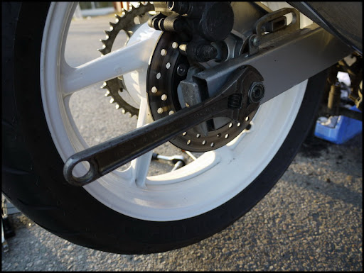 Adjust the slack in the chain and tighten up the rear wheel.