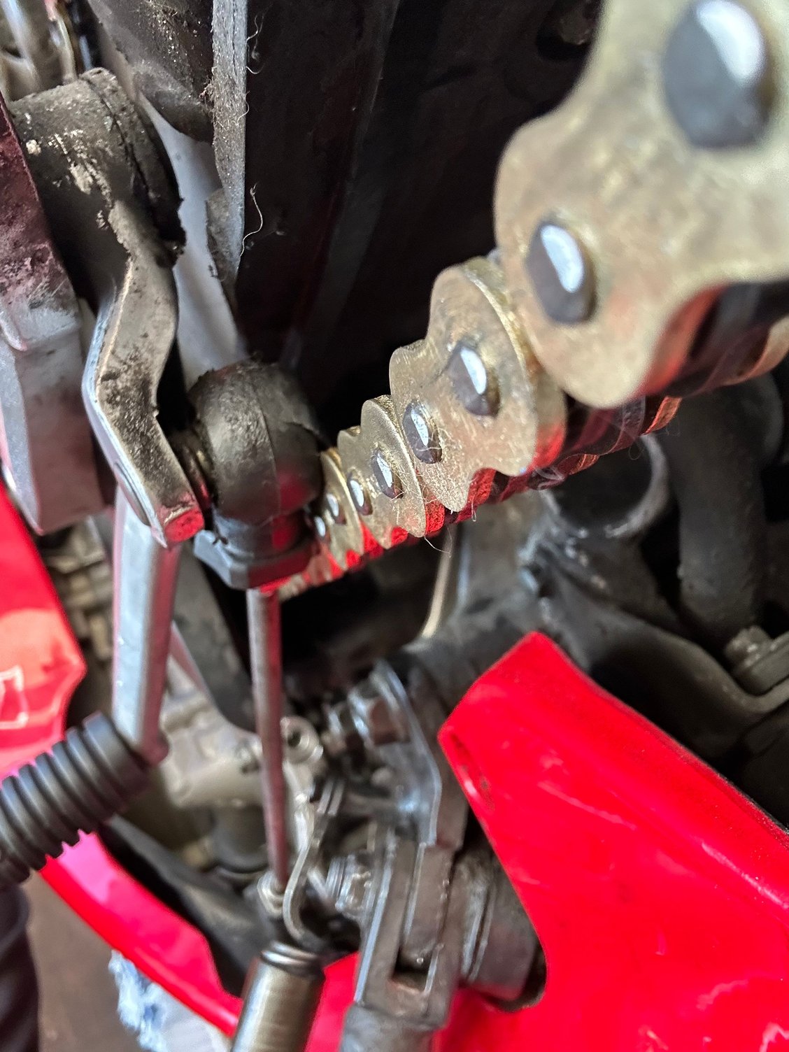 So I got the idea to try this.... getting rid of all the linkage and levers entirely, and like dirt bikes, put the shift lever directly on the shift shaft pointing backwards. You get rid of the added lever action, which while it does make for slightly more resistance to shift, it definitely makes for a shorter throw. I got to looking around at different levers, first one I tried was from a 1993 Honda CR-250... the angle and length was absolutely perfect, but the hole for the shaft was about 2mm too big. So kept looking and found another one with an almost similar shape and slightly smaller hole, and it worked like a champ.... it's off a 1990 Yamaha YZ-80. It moves the shifter 'foot' about an inch forward, but it's really not a big deal at all unless you might have super small feet, lol. It looks like maybe a VFR shifter would work too... I may still play around with a few different ones and see. But a YZ-80 one definitely does work. It's a tight squeeze for the pinch bolt as it almost hits the water pump case, but just barely misses it. I had to turn the bolt so the flat side of the bolt head was facing the water pump