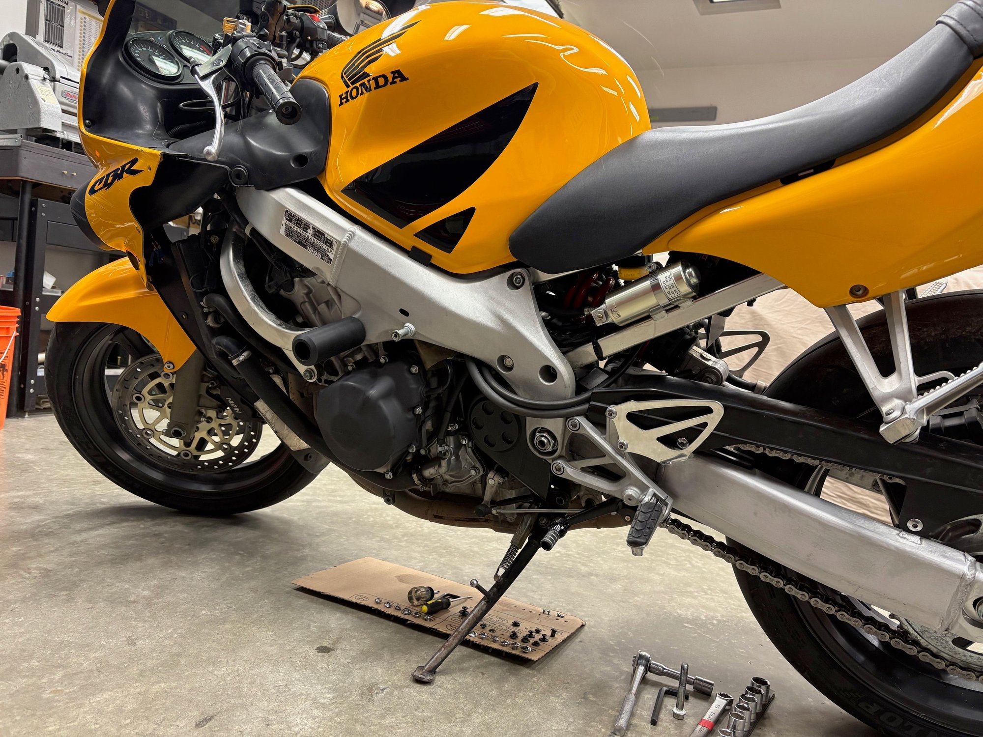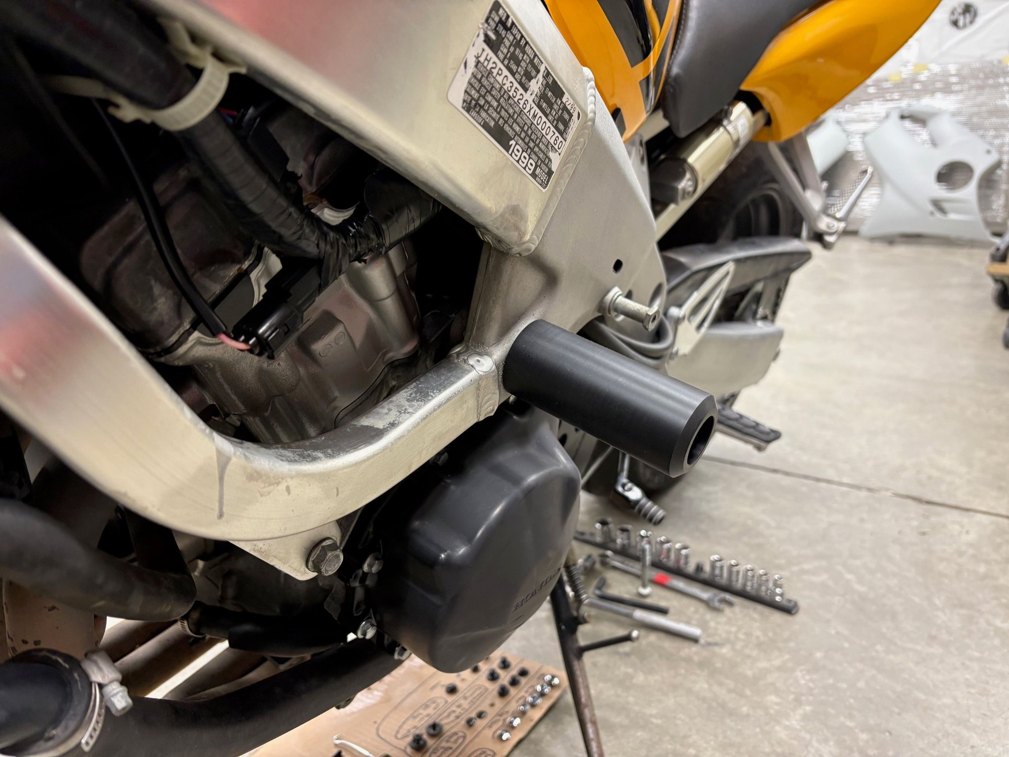 I’m in the process of mocking up frame sliders for my CBR600 F4 and haven’t drilled the holes in the fairings just yet. I’ve positioned the sliders in a spot that connects to the engine block, which seems to be a standard placement based on photos I’ve seen online.