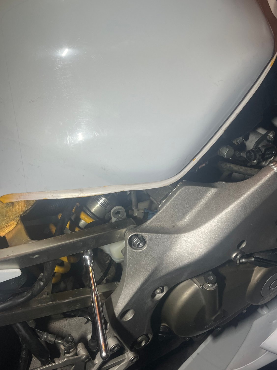 hello i’ve had the time to do some work on my f4i recently… I have both forks rebuilt and ready, and tonight I installed the manual CCT which was not terrible but a tight spot as expected. Only took off seat, gas tank, rear master, coolant overflow and dropped side fairing a little. The use of some extensions along with a swivel I squeezed my hands in for around 2 hours and got the thing changed. Now to set the tension tomorrow and see how she sounds!