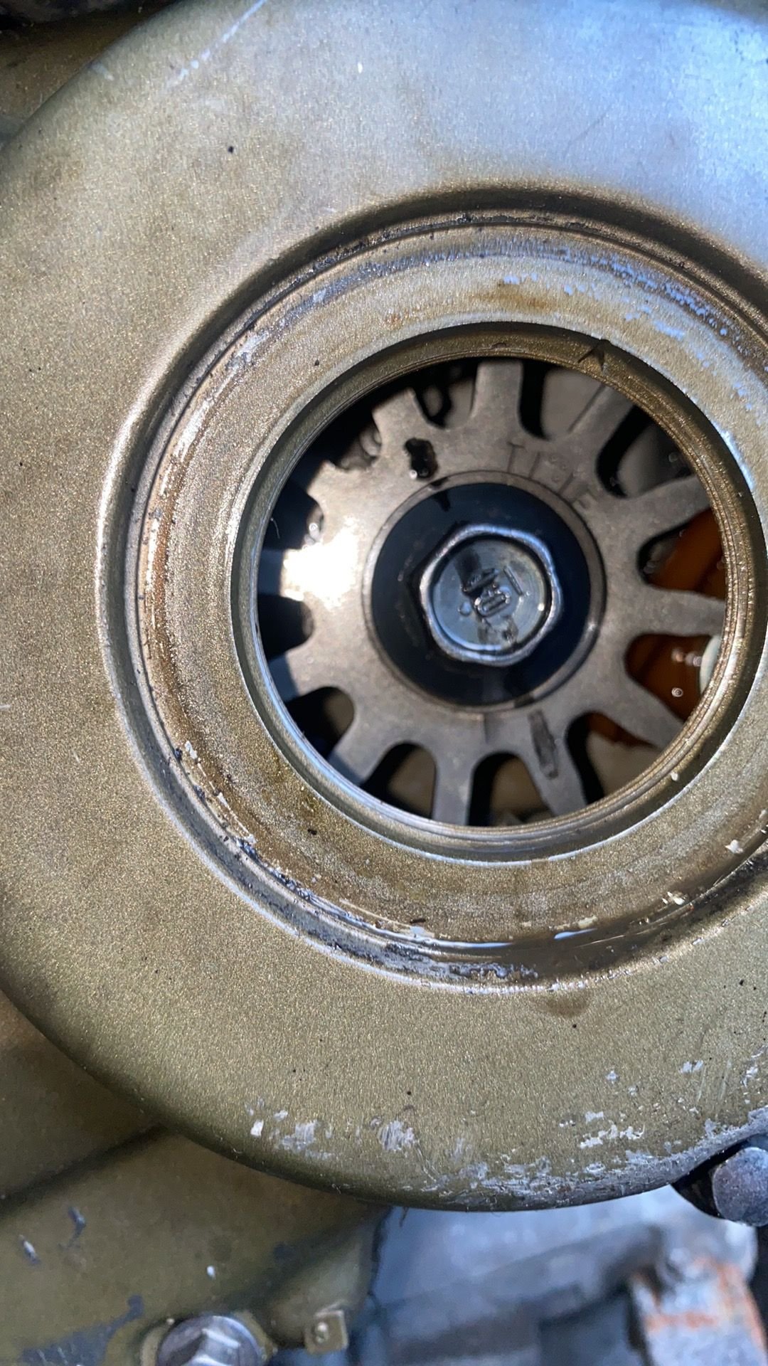 then another 360 ( back TDC) everything is matched up in the photo : ( how ever the tire marker on the Cam-Chain its self... was behind the engraved markings markings ( as if the chain jumped timing , but the OEM markings match up every time