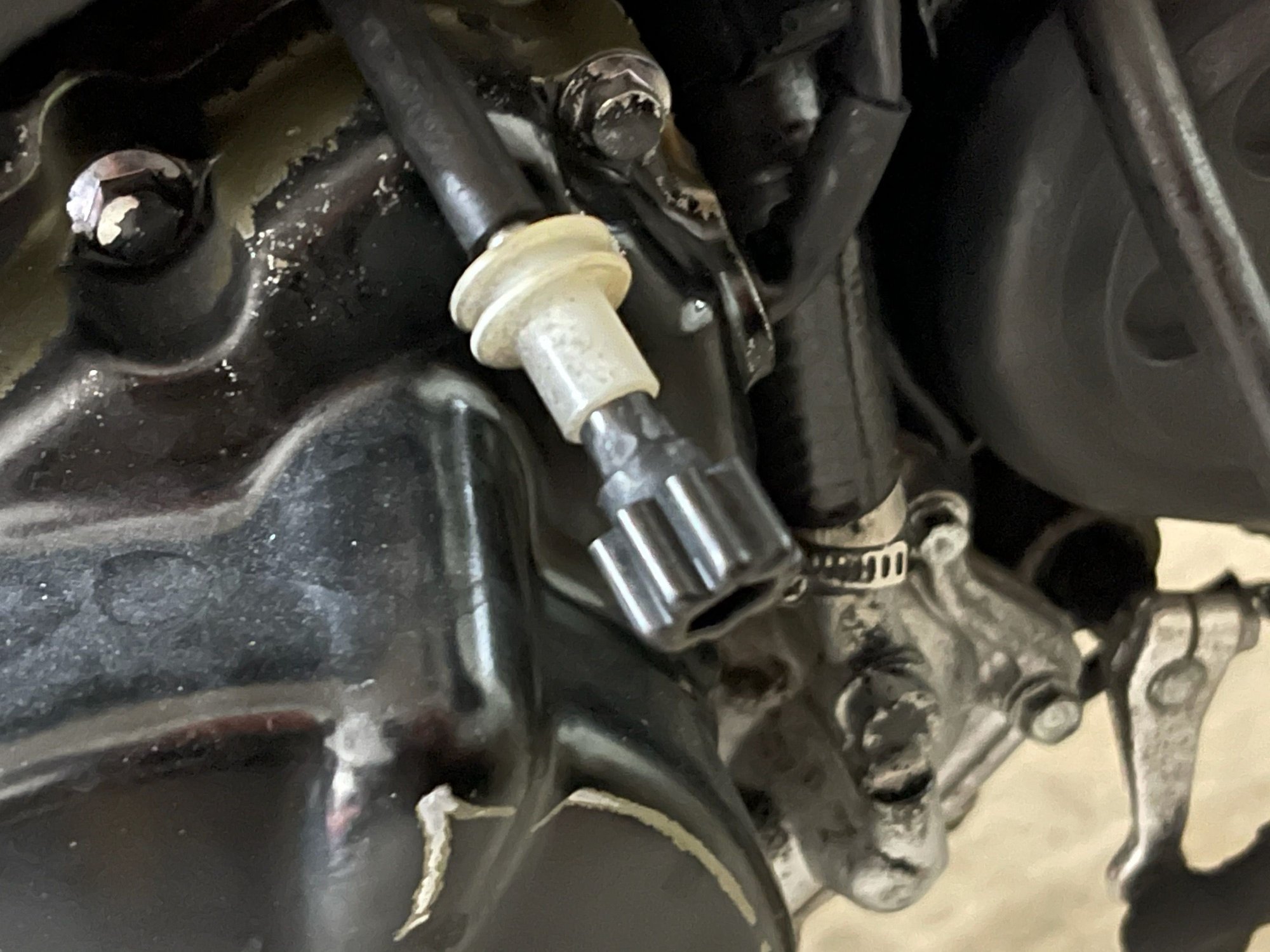 That is the idle adjustment screw. It allows you to bring your idle within specs. Be careful turning it too many turns counterclockwise. There’s no stop on it. It will unscrew to the point of becoming disconnected. Then you will have a fun time finding the spring and washer laying somewhere probably underneath your starter.