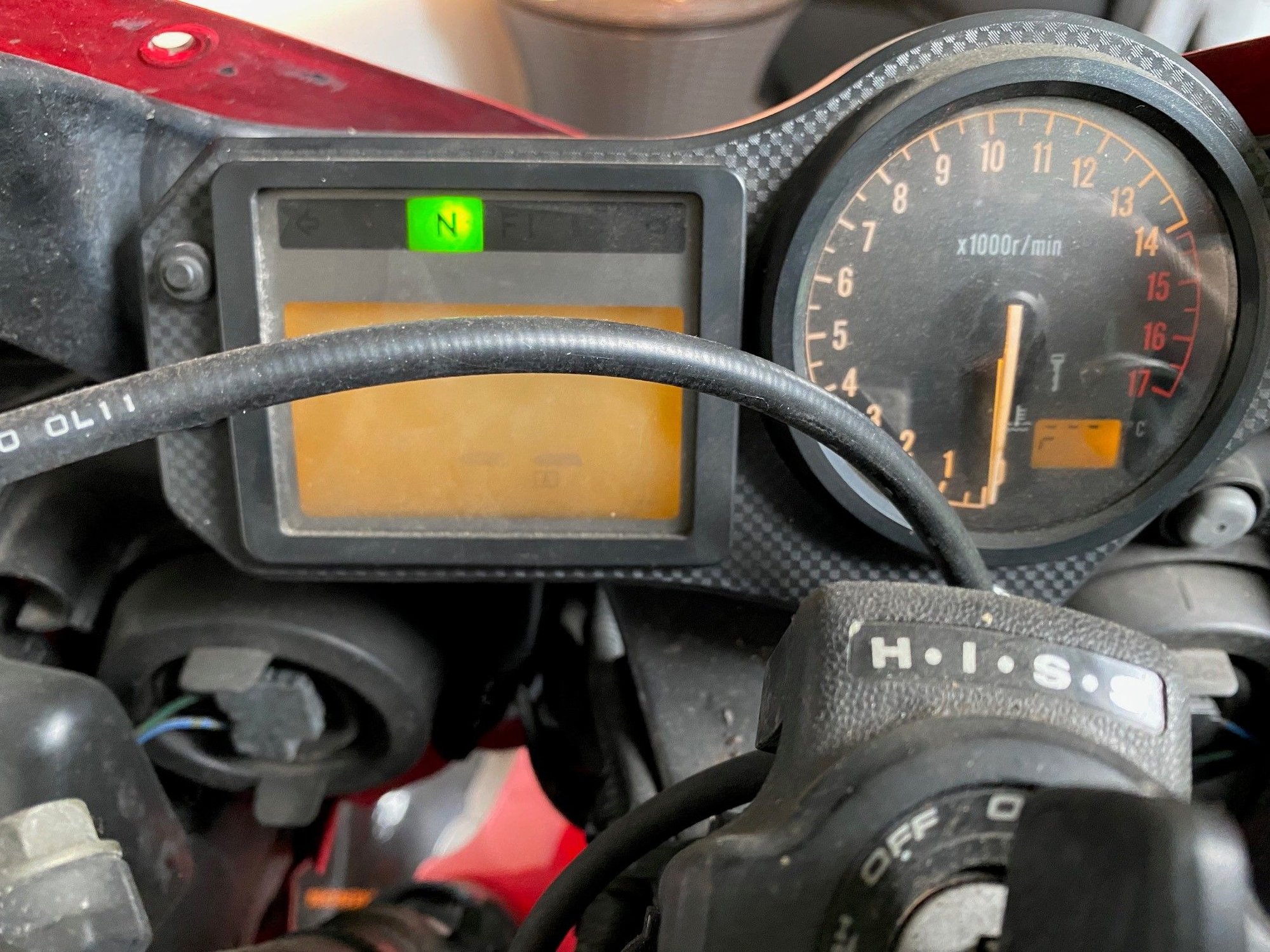 There is a 9P black connector that has a Red/Green wire in it. That is the 12v supply to the cluster. Fuse "F" protects that circuit. Check to see if you're getting 12v to that wire when you turn the ignition key on. Actually, now looking at the wiring diagram more closely, it should have 12v all the time. It keeps the clock and trip meter running. That entire circuit is protected by the main 30A fuse that is in the Starter Relay Switch by the battery.
