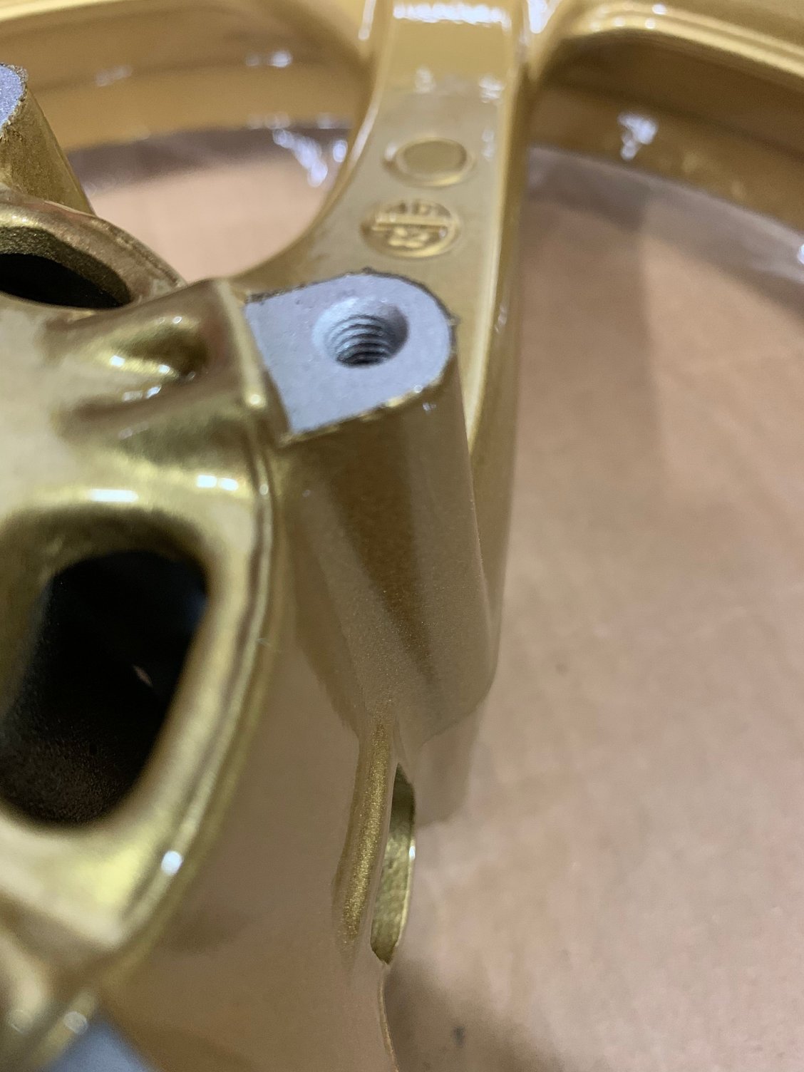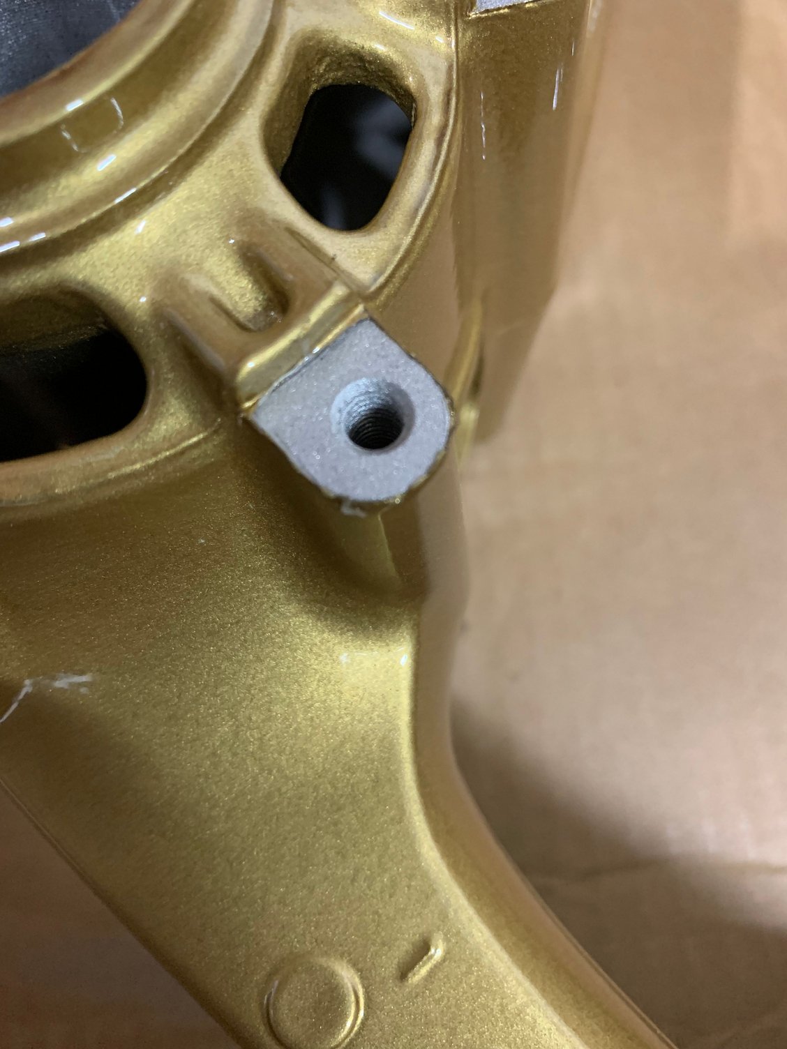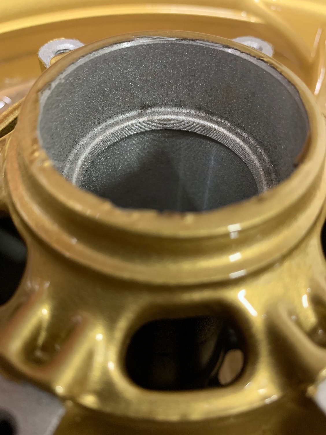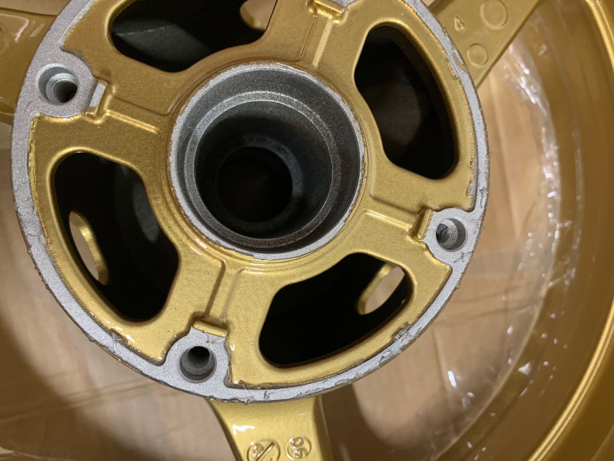 Hey guys, new member here. I had some wheels powdercoated for my 954rr and the guy did a pretty decent job masking stuff off (bearing holes, threads, etc) however it is not perfect, such as where the rotors will sit, there is a little bleed through or unevenness. A few other small spots could use some attention as well. I am trying to avoid headaches after assembly and wondering if anyone here has any experience with this. I was gonna try some emery cloth and just hit the spots with that until i am satisfied but thought i'd ask for advice first. I attached some pics so you can see what i mean. Overall i am satisfied with the results just wanna touch up a few spots before assembly
