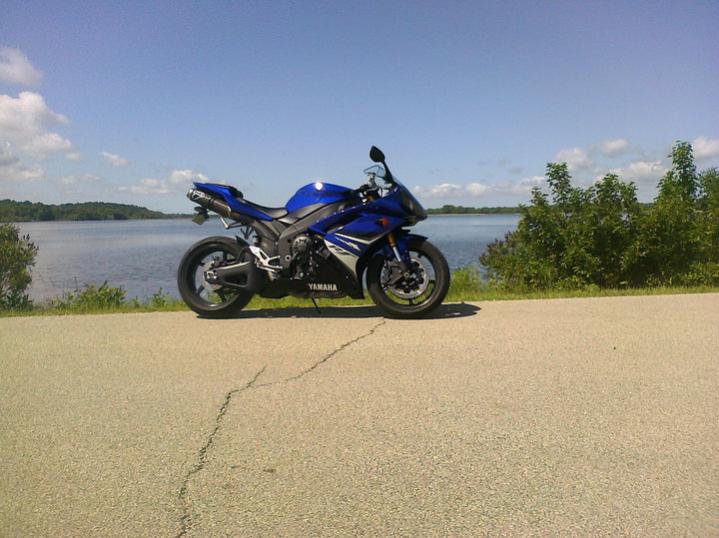 Thats a good looking R1, but not as good looking as a cbr 954, (silver on black with red lettering). Or a all black LE 2008 cbr 1000rr *DROOLS*...But seriously if I didn't have a cbr, a R1 would be my other choice. Infact we had a poll a while back about that and I believe it was yamaha, the BWM s1000rr, suzuki, kawi. Take it easy and be easy on those on ramps they get a lil slick.