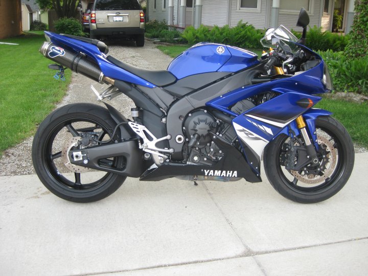 Thats a good looking r1, but not as good looking as a cbr 954, (silver on black with red lettering). Or a all black le 2008 cbr 1000rr *drools*...but seriously if i didn't have a cbr, a r1 would be my other choice. Infact we had a poll a while back about that and i believe it was yamaha, the bwm s1000rr, suzuki, kawi. Take it easy and be easy on those on ramps they get a lil slick.