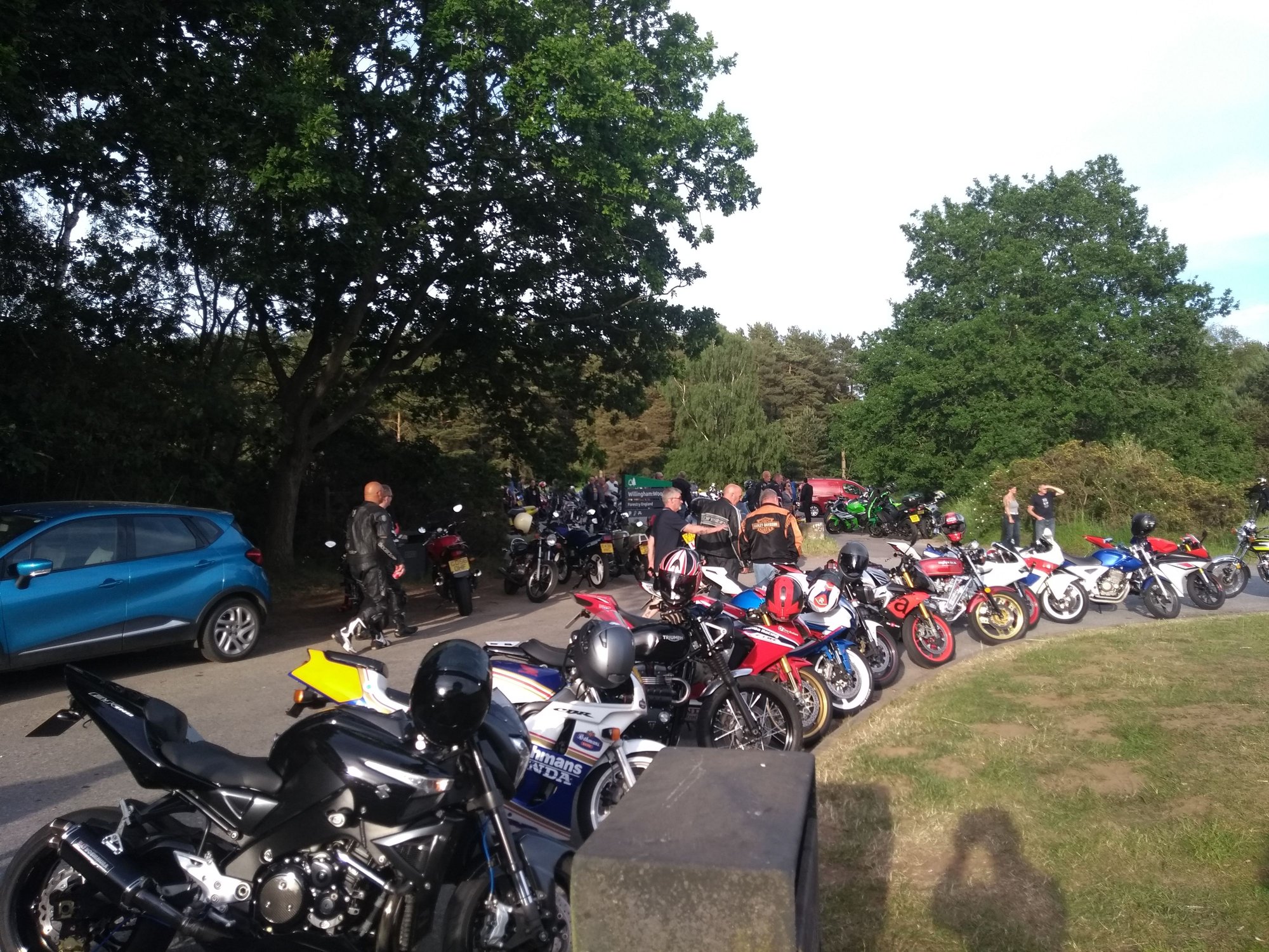 Hi All, just had my 600fk out this weekend around 85 miles its only 2nd ride out since rebuild. I met a group of people near the Humber Bridge and went on a ride around Lincolnshire with a group of like minded souls to a place called Willingham woods Market Rasen LN8 3RQ. I hadn't been there before it seemed to take ages getting there as the roads are so long and open with just the occasional interruption of the odd s bend or corner but the riding was sublime a warm dry night and not too many cars around. The location is apparently a regular bikers meeting place and there was every bike there you could think of in there thousands or at least higher hundreds I'll definitely be going back there was a small kiosk with food and drink too. just the end of the meet