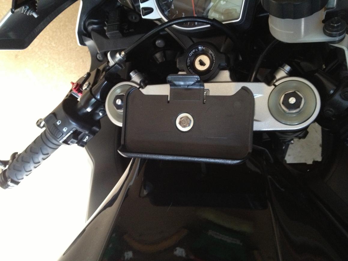 - (side note, I use a RAM XGrip Universal mount that puts my phone right down in the center hole of the Triple Tree, easy to glance at if needed but out of the way of gauges and such)