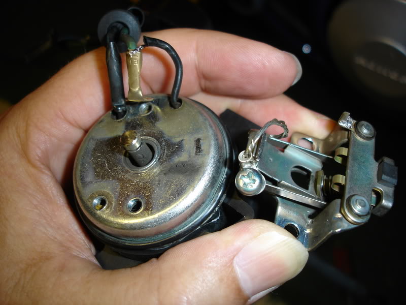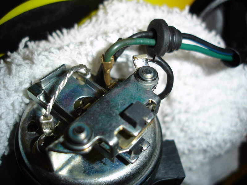 Here's the part we're going to install. Attachment 89722 The fuel pump is located on the left side of the bike behind the side cover. You can see it through the opening behind the fuel petcock. It is held in place by a rubber boot and has a black cap on one end that is held in place with 1 phillips screw. Attachment 89723 Remove the left and right side covers, which will allow you to then remove the seat (2 bolts). This is going to give you access to the bolts that hold on the fuel tank. You don't have to remove the tank, but raising the rear of the tank about 4" gives better access and visibility to the fuel hoses. The tank has 2 drain hoses attached to the underside that you should be able to just slide off using a flat screwdriver. http://i52.photobucket.com/albums/g2...p/DSC04046.jpg Make sure you've turned off the fuel petcock, otherwise you're going to have fuel running all over the place. Place a rag under the fuel pump and lines to catch any fuel that is likely to spill as you remove the lines. Remove the fuel pump by disconnecting the 2 fuel lines. The lines are held in place by hose clamps that are easily moved with a pair of pliers, then use a flat screwdriver to slide the hoses off the pump. After that, there is one (1) electrical connector attached to the fuel pump wiring harness. It connects up above the pump towards the center of the bike under the tank. Once you have the pump out, there is one phillips screw holding a black cap on the end of the fuel pump. It has some black paint on it. Use a small screwdriver to scrape the paint off the head of the screw so you can remove it. The cap is a little snug as it has an "O" ring under it to help seal out dust and dirt. Once you have the cap off, here's what you have. The little rubber grommet on the wiring harness will slide up the wires with a little encouragement. Some WD-40 on the wires helps it slide up too. Attachment 60082 In the next photos you can see the worn and burnt contacts. These contacts open and close rapidly while the pump is running. Attachment 60083 Attachment 60084 Attachment 60085 It's these contacts that need replacing. In the following video you can see the action of the pump with the old contacts. In fact, at about 23 seconds into the video, the pump sputters and stops running (this is what causes you to get stuck on the side of the road). The video then fades to how it looks and runs with the new contacts in place. I use a gas soldering iron because it's portable and heats up real fast. All you have to do is heat the solder on the tab where the single black wire that comes out of the top of the fuel pump until it melts, and pull the wire out of the tab. Be carefull, it's hot and the solder will burn you. Attachment 60086 Attachment 60087 The wire will look like this when you remove it. Just move it a little out of the way. Attachment 60088 All you have to do now, is to remove the 2 phillips screws that hold the contacts to the top of the pump and remove the old contacts. The ground strap that is attached to the contacts goes on the screw that's on the opposite side of the pump from the black wire that you unsoldered. The Green wire goes under the screw that's on the same side as the black wires. The plunger shaft of the pump has a groove in it near the end of the shaft. The Switch Contacts need to engage this groove when you install the new contacts. The movement of that plunger up and down is the action that opens and closes the Switch Contacts. You'll notice that the opening in the Switch Contacts has a flat side on it that that needs to be in the groove on that shaft. Attachment 60089 Take out the new Switch Contacts and inspect them. You'll notice they have much more material on the electrical contacts than the one you're removing. Also note the tab where you need to solder the black wire to after you've installed the contacts onto the pump. Attachment 60090 Attachment 60091 Screw the new Switch Contacts onto the top of the fuel pump, making sure that you've engaged the flat spot from the contacts with the groove in the plunger shaft. Attachment 60092 Place the small black wire into the tab, heat it up with the soldering iron, put a little solder on it, and you're done with the soldering. Attachment 60093 By putting a little WD-40 on the insulation of of the wires where the rubber grommet is, you'll be able to slide the grommet up a couple of inches or so. That way you'll be able to push it into the black cap properly so that it seals the wiring harness where it comes out of the top of the cap. Here is an inside and outside view of the harness as it goes through the cap. Attachment 60094 Attachment 60095 Put the cap back on, put the single phillips screw back in place. Put the fuel pump back in position in the mounting plates and re-attach the fuel lines. The line closest to you is going to the carburetors, the line further away is coming from the tank by way of the inline fuel filter. That All There Is To It Now, just put the tank back in place, reattach the vent lines, put the seat back on, then the side covers and you're done. This is a much better repair than having to purchase a new fuel pump or going with a used one. I hope this helps you. Let me know what you think and if you have any questions or feel I left anything important out. |